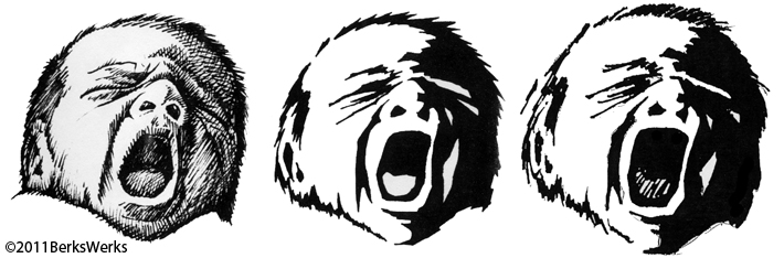the simple evolution of one of my strongest marques… emblazoned on many a t-shirt. the first being the infamous Steelhead Tour T’ worn by the crew on the documentary of the pyramid building built for Steelcase HQ back in the late 1980s. we spent a great many hours in the studio and the concrete floors played hell on our feet, so, the face was on the front with the small title “my feet hurt” and the back had the strong commentary: THE TORTURE NEVER STOPS, Steelhead Tour 1989